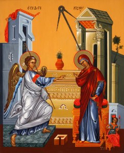 En Lucas 1:28 el ángel Gabriel enviado por Dios le dice a la Santísima Virgen María «Alégrate, llena de gracia, el Señor está contigo.». Las palabras en español «Llena de gracia» no hace justicia al texto griego original que es «kecharitomene» y significa una singular abundancia de gracia, un estado sobrenatural del alma en unión con Dios.