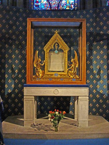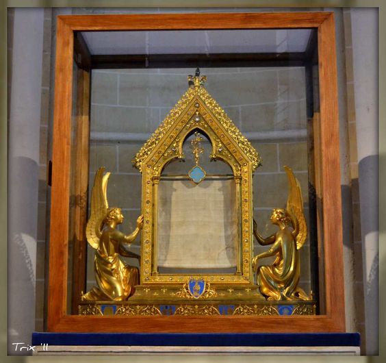 Otra importante reliquia de la virgen fue regalada por el rey Carlos el Calvo, en 876, de Aix-la- Chapelle a Chartres. Esta preciosa reliquia, dada a su abuelo, Carlomagno, por el Emperador de Constantinopla: es nada menos que el Velo de María Santísima, es un velo de seda, sin costuras, que hasta el día de hoy se conserva en la Catedral de Chartres.