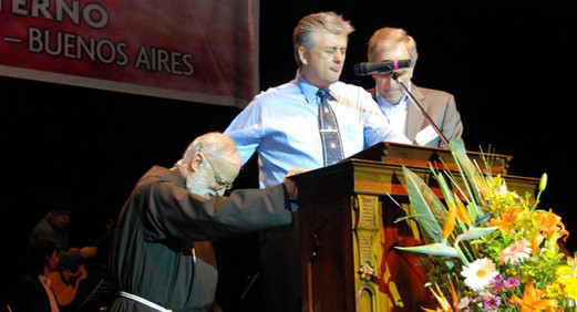 Pero su gesto de humildad fue más allá: además de haber permanecido durante la tarde compartiendo las gradas entre el público, luego de dirigirse a la asamblea, recibió, de rodillas, la imposición de manos de los pastores, y laicos que animaron este encuentro ecuménico.