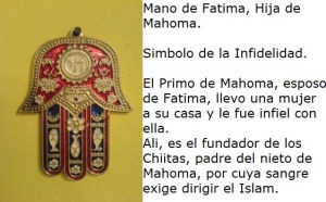 Una representación suya, se adora como la mano de fatima, con un ojo azul y un punto negro en la mitad.