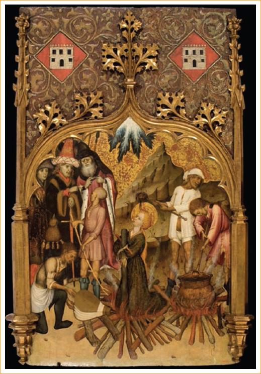 El cónsul, al enterarse de lo sucedido, y convencido de que Lucía era una bruja, ordenó que la quemaran en la hoguera, pero, después de arder y consumirse toda la leña, Lucía estaba íntegra. Este pasaje fue pintado en temple sobre madera por el pintor catalán Bernat Martorell (1400-1452), y se titula Martirio de Santa Lucía en la hoguera (c. 1435). Finalmente fue decapitada, lo que sucedió el día 13 de diciembre del año 304.