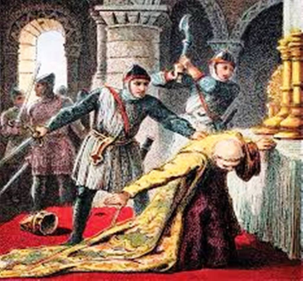 Santo Tomas Becket, obispo y mártir, que por defender la justicia y la Iglesia, fue obligado a desterrarse de la sede Canterbury y de la misma Inglaterra, volviendo al cabo de seis años a su patria, padeció mucho hasta que fue asesinado en el atrio de la catedral de Canterbury, por los esbirros del rey Enrique II.