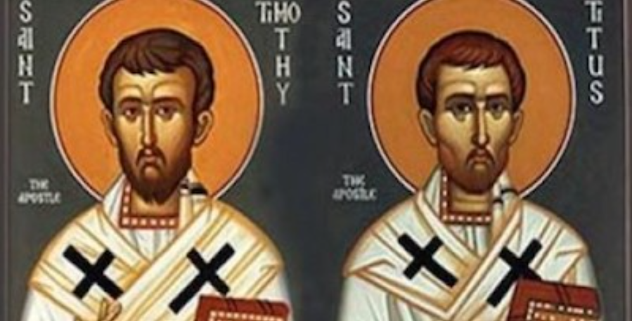 Timoteo y Tito, discípulos de san Pablo (siglo I). Presidieron las comunidades cristianas de Efeso (Turquía) y de la isla de Creta respectivamente. Ellos fueron los destinatarios de las cartas llamadas «pastorales», cartas llenas de excelentes recomendaciones para la formación de pastores y fieles. Tito y Timoteo tienen su fiesta juntos el día después de la conversión de San Pablo.