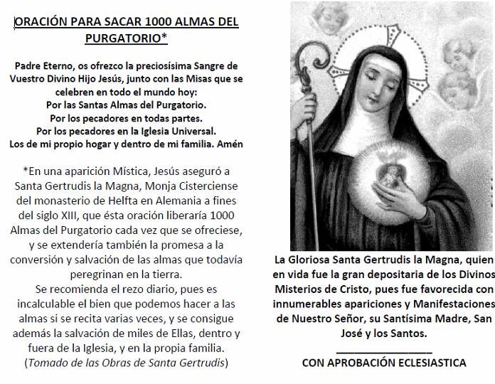 Oración de Santa Gertrudis la Grande por las Santas Almas del Purgatorio