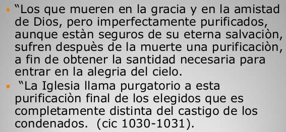 1030 Los que mueren en la gracia y en la amistad de Dios, pero imperfectamente purificados, sufren después de su muerte una purificación, a fin de obtener la santidad necesaria para entrar en la alegría del cielo.