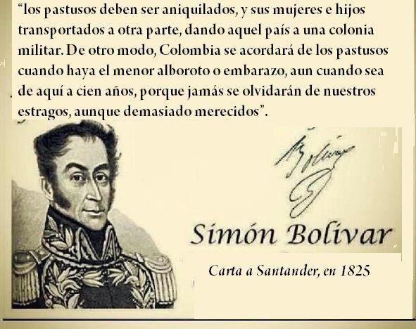 La libertad de los esclavos y la abolición de los resguardos fueron promulgados en la República de Colombia por el general José Hilario López, Presidente de Colombia en 1852 o sea 22 años después de la muerte de Bolívar en 1830.