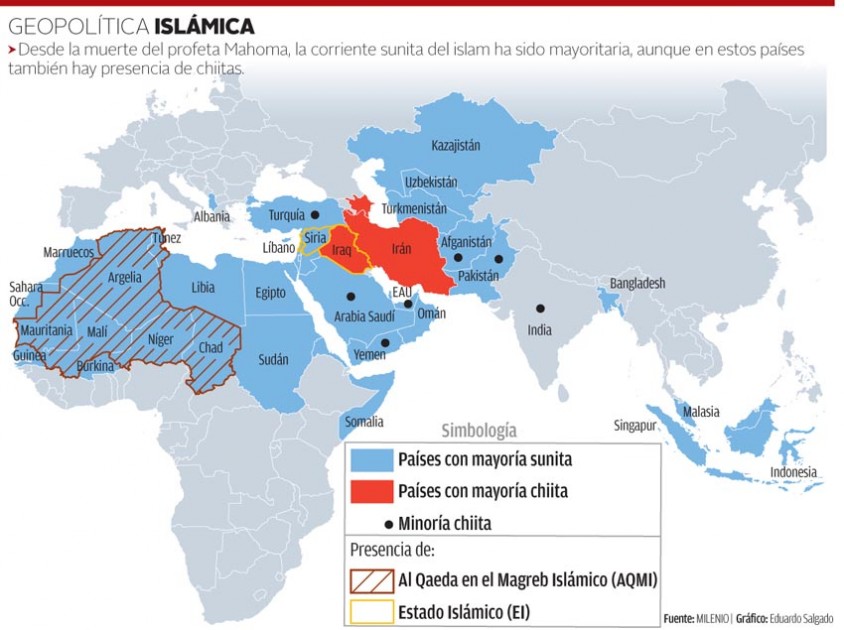 El Irán de los ayatolas y Hezbolá son chiitas. Saddam Hussein el dictador Iraquí era sunita.