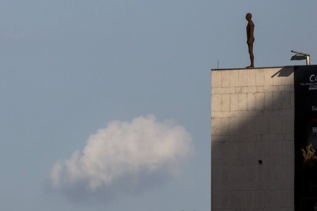 A life-size «Naked Man» sculpture by British artist Antony Gormley, stands on the rooftop of a building at the Central Financial District in Hong Kong, China November 18, 2015. The public art project «Event Horizon” by Gormley, which features 31 sculptures placed at both street level and rooftops of buildings, will be exhibited in Hong Kong from November 19, 2015 to May 18, 2016. The project has prompted two alarm calls to the police, as some sculptures placed on building tops have been mistaken for people contemplating suicide, according to local media. REUTERS/Tyrone Siu EDITORIAL USE ONLY. NO RESALES. NO ARCHIVE