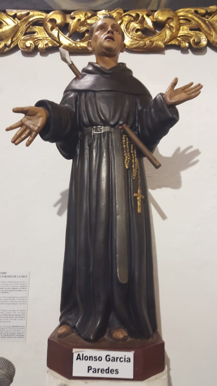 N.V.P Fr Alonso García Paredes nació en España en 1567 y mvrio en Vraba martirizado en 1633. En el desierto D la Candelaria.