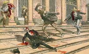 25 de Marzo de 1874, el Presidente Gabriel García Moreno, consagra al Sagrado Corazón de Jesús al Ecuador y se convierte en el primer país en el mundo en ser consagrado… Un año más tarde, el 6 de agosto luego de comulgar en la Iglesia de Santo Domingo, se dirige al Palacio de gobierno, aparece un machete asesino, fueron en total catorce machetazos y seis balazos. Mojó el dedo en su propia sangre y escribió en el suelo: DIOS NO MUERE..! Logran dar de baja a uno de los asesinos, en su bolsillo se hallan cheques firmados por conocidos masones…