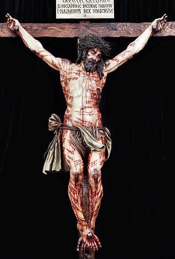 Después de severa flagelación, Jesús fue burlado, escupido y obligado a cargar su propia cruz hasta el Gólgota.