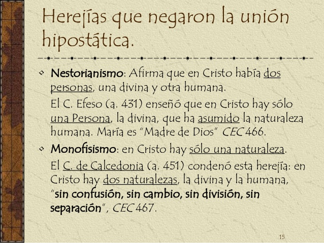 Nestorio, arzobispo de Constantinopla 428-432 negaba que la Virgen fuera Madre de Dios y veía en Jesucristo dos personas, había iniciado una herejía que Heraclio en el concilio de Constantinopla condenó junto con el monotelismo.