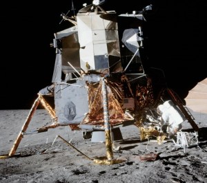 A juzgar por la profundidad de la huella de Neil Armstrong, hay una capa de polvo bastante gruesa en la Luna, porque sin gravedad penetra mucho en el polvo Lunar, donde esta el crater profundo que dejo una nave tan pesada en su descenso?