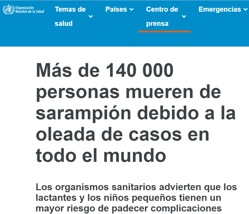 El sarampión es una enfermedad infecciosa causada por un virus, la vacunación masiva le hizo creer al mundo que estaba erradicada, pero ha surgido recientemente con fuerza y es solo gracias a los antibióticos que se ha logrado contener, la pregunta que surge es, si este virus estaba simplemente latente en su ciclo y las vacunas no han hecho nada para evitarlo, por qué se vacuna a la gente si la vacuna no lo previene? En 2014 fueron registrados, 644 casos en USA. En 2013, murieron 145.700 personas en todo el mundo por sarampión.