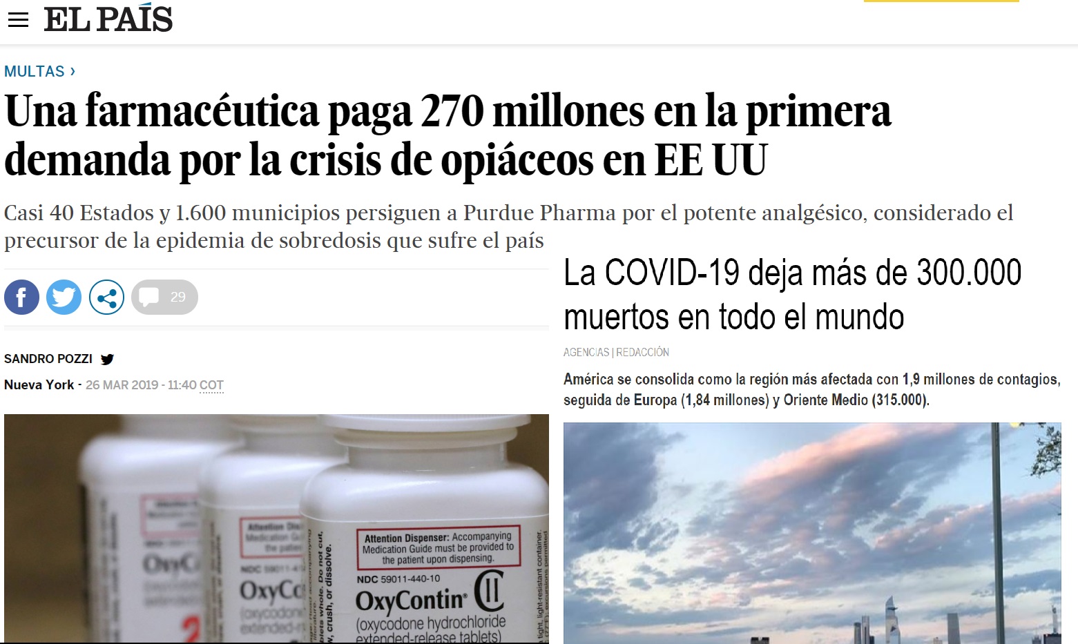 La categoría de fármacos cuya prescripción excesiva se ha convertido en un problema son los opioides. con un consumo de más de 10.500 toneladas al año. Las cifras de adicción y muertes por sobredosis de opioides es conocida por los casos de algunas estrellas, algunos se cambian a cocaína o heroína cuando no tienen acceso a la receta.