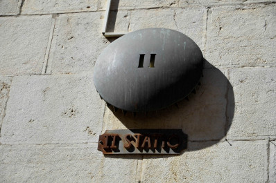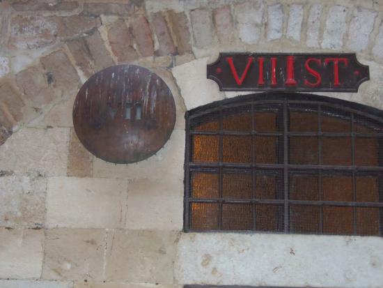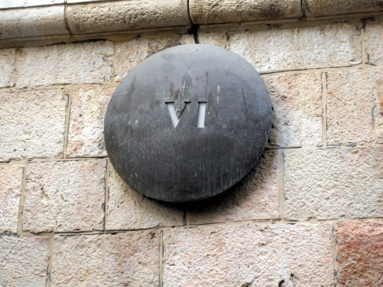 Una inscripción en el arquitrabe de una puerta indica el lugar del encuentro entre Jesús y Simón el Cirineo, que fue quien llevó la pesada cruz de Cristo hasta el monte Gólgota (Calvario), el lugar de la crucifixión.