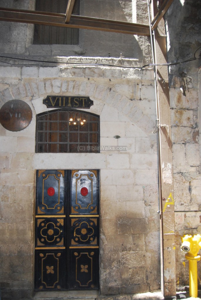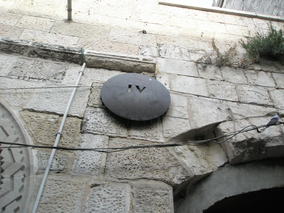 El lugar de la segunda caída de Jesús y Séptima Estación está señalado con un pilar situado entre la Vía Dolorosa y la pintoresca calle del Mercado.
