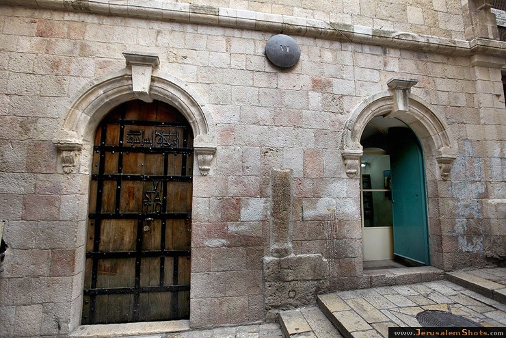 A mark of station 3 of the Via Dolorosa, and an Armenian church, in the old city of Jerusalem, Israel