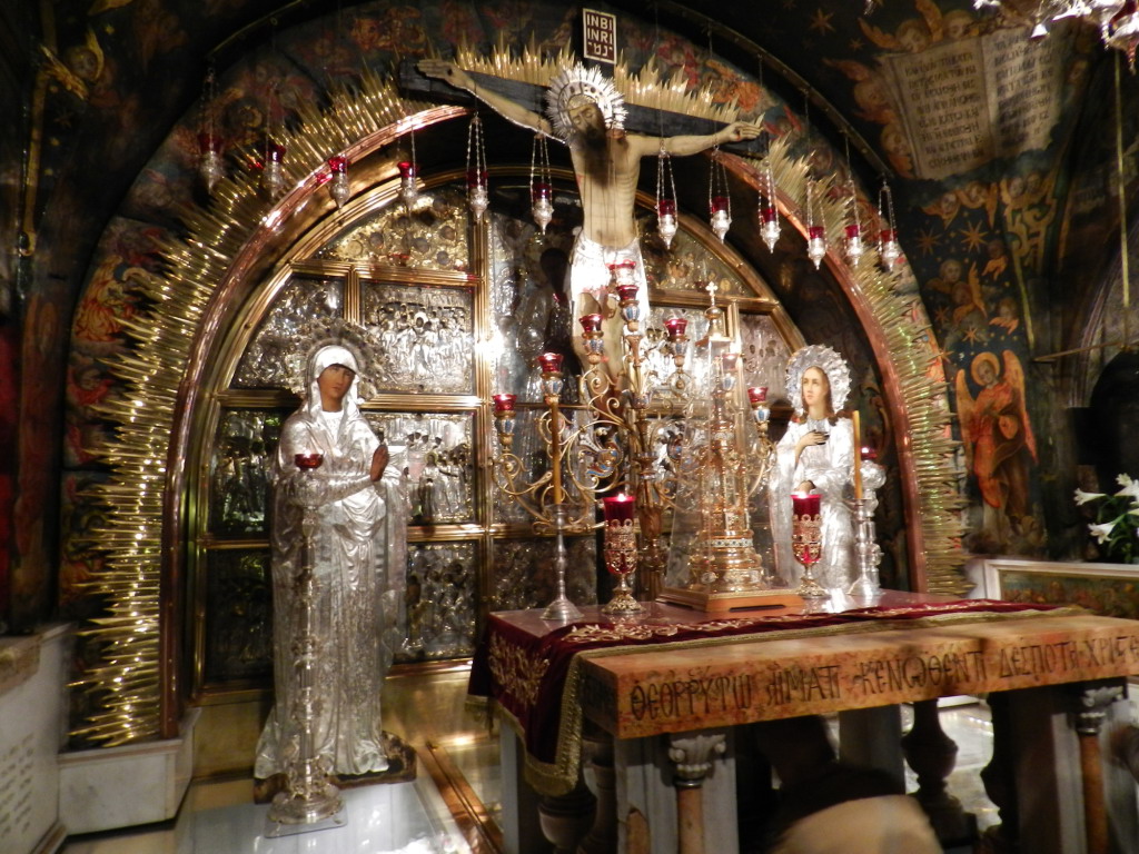 En el muro exterior del monasterio griego ortodoxo hay una cruz tallada ennegrecida por el tiempo. Este es el lugar donde se supone que Jesús encontró a las piadosas mujeres, como aparece en el Evangelio según San Lucas.