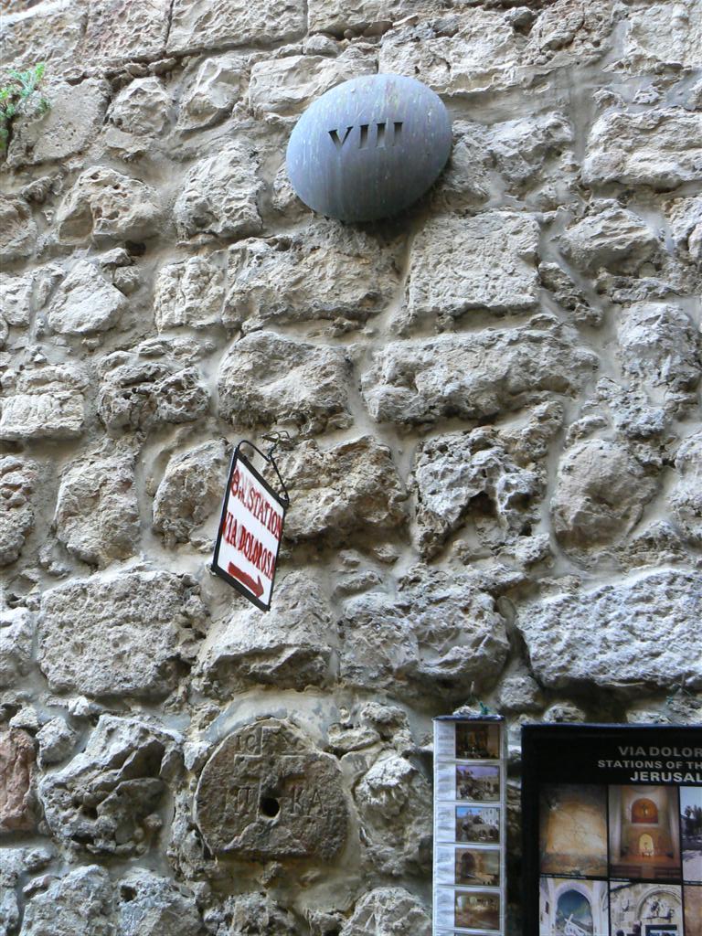 El lugar de la segunda caída de Jesús y Séptima Estación está señalado con un pilar situado entre la Vía Dolorosa y la pintoresca calle del Mercado.