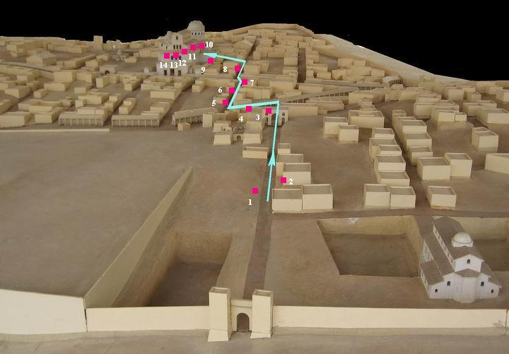 La Vía Dolorosa es una calle de la Ciudad Vieja de Jerusalén. Dicha calle desde la puerta de los Leones asciende hasta el Gólgota y fue el camino que recorrió Cristo, cargando con la Cruz, camino de su crucifixión. Allí se encuentran marcadas nueve de las 15 estaciones del Viacrucis. Las restantes estaciones se encuentran dentro de la Iglesia del Santo Sepulcro.