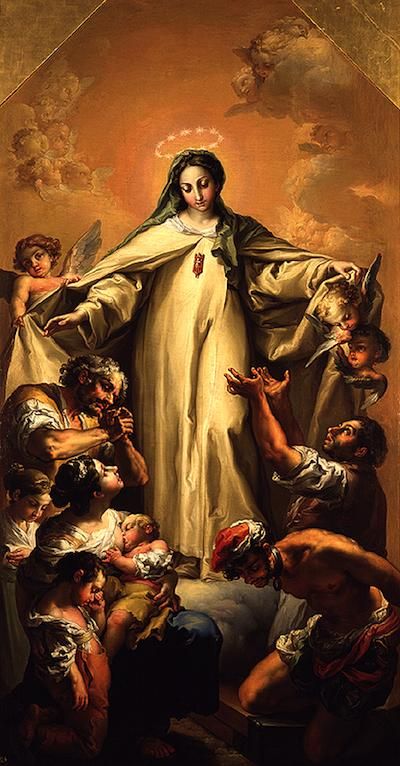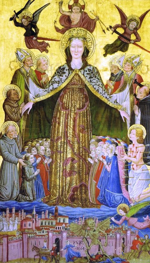 El manto protector de la Virgen María oculta a los creyentes contra el mal y los cubre de misericordia.