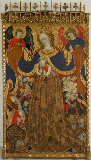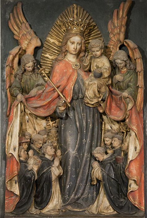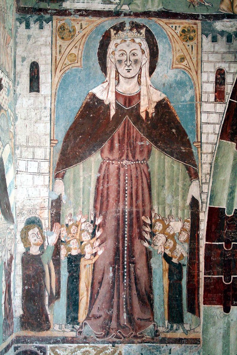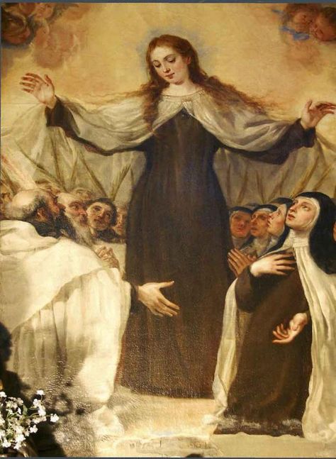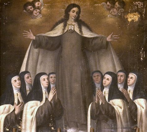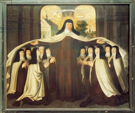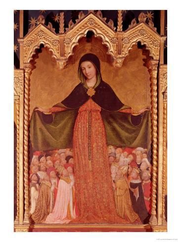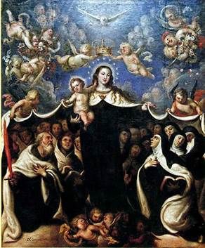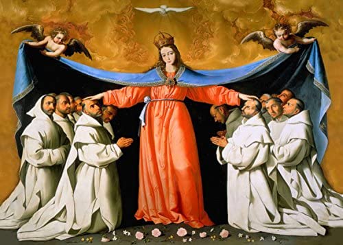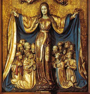 Fueron particularmente los cistercienses y los dominicos quienes promovieron la veneración de María como mecenas de los fieles, al predicar las visiones del manto protector de Maria, que Cubre amorosamente a sus verdaderos Hijos.