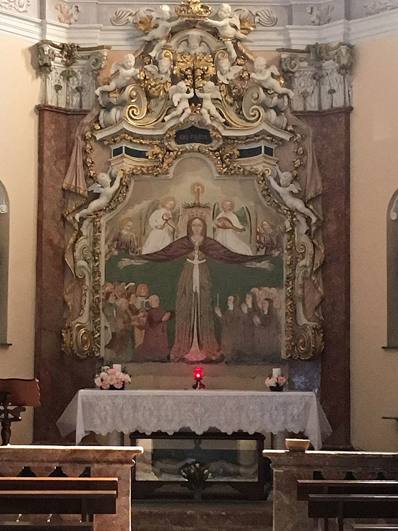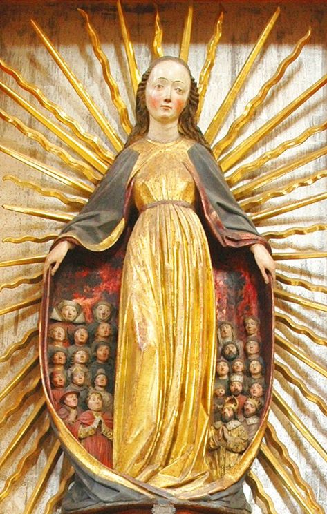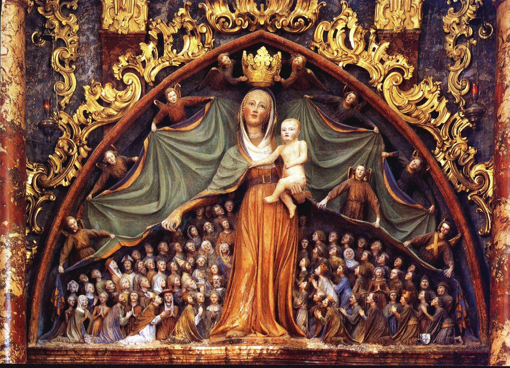 Entre los siglos XIV al XVIII se desató la peste sobre Europa y la virgen, manto de misericordia, fue la protectora contra este flagelo, se pueden encontrar, en casi todas las catedrales de Europa, Imágenes de la virgen protegiendo a sus hijos de la plaga, en Alemania se le conoce como Pest-bildern.