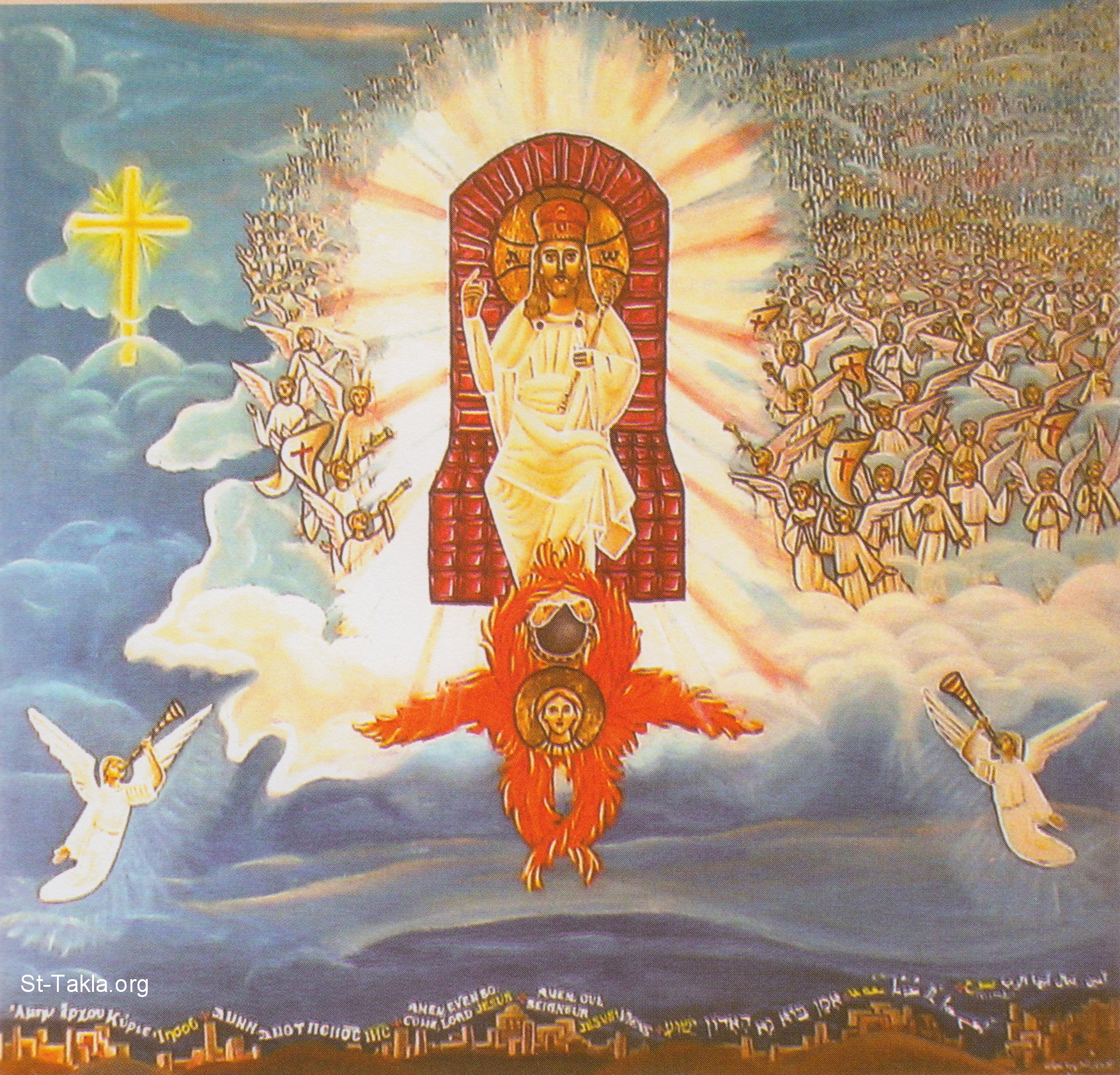 En la segunda venida, Cristo viene rodeado de ángeles entre las nubes del cielo (Daniel, 7, 12).