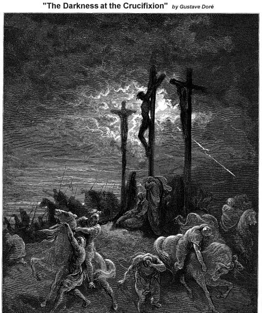 Los evangelios (Mateo Marcos y Lucas) Narran que durante la crucifixión ocurrió una oscuridad, siendo el primer día de la pascua y que ocurrió a partir de la “hora sexta” (mediodía) hasta la “hora nona”.Es decir 3 horas