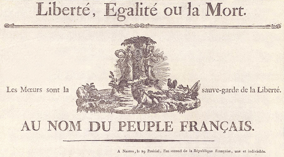el general jacobino Westermann escribía triunfalmente a París, al Comité de Salud Pública: +¡La Vendée ya no existe, Ha muerto bajo nuestra espada, con sus mujeres y niños. Acabo de enterrar a un pueblo entero en las ciénagas y los bosques de Savenay, he aplastado a los niños bajo los cascos de los caballos y masacrado a las mujeres, que así no parirán más bandoleros. No tengo que lamentar ni un prisionero. Los he exterminado a todos. Desde París elogiaron la diligencia en “purgar completamente el suelo de la libertad de esta raza maldita”.