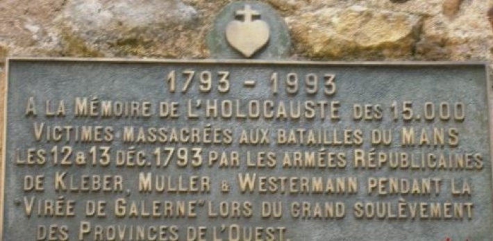 El genocidio de La Vendée dejó más de 150 mil muertos entre los años 1793 y 1794, los católicos eran obligados a renunciar a su fe con la amenaza de morir cruelmente. Tal es así que se realizaron despiadados ahogamientos masivos de mujeres, así como quema de niños en hornos de pan.