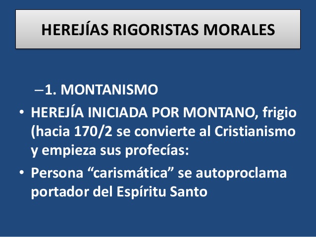 La Herejía del «movimiento reavivador» o de “avivamiento” apareció en el siglo II; lo fundó un tal Montano, que afirmaba hablar bajo la inspiración del Espíritu Santo, decía «Yo soy el Padre, la Palabra, el Espíritu Santo» (denuncia Didymus, De Trinitate, III, xli) Él y sus seguidores sostenían poseer la plenitud del Espíritu Santo y sus carismas; afirmaban poseer, el don de curaciones, de profecía y de lenguas. Montano y sus profetisas anunciaban el final inminente del mundo, ordenando a sus fieles que se reunieran en un lugar determinado para esperar allí el descenso de la Jerusalén celestial. El montanismo se apoya en Profetismo y la escatología, muy convenientes a la hora de quitarles los bienes a sus seguidores.