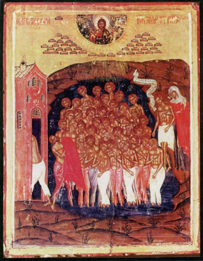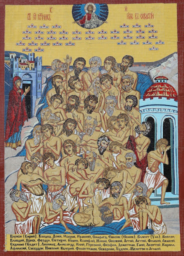 El obispo, al informarse que estaban rodeados por un ejército y ciudadanos idolatras armados, ordenó que se realice rápidamente el misterio de la Comunión. Luego bautizó a los catecúmenos para que tengan una salvación segura.