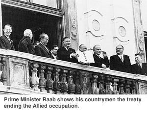 Austria, luego de la segunda guerra mundial, cayó bajo el yugo soviético, bajo el eje comunista, se hizo todo tipo de intentos para obtener la retirada de los rusos; todos los medios políticos y diplomáticos fueron ensayados, pero en vano.