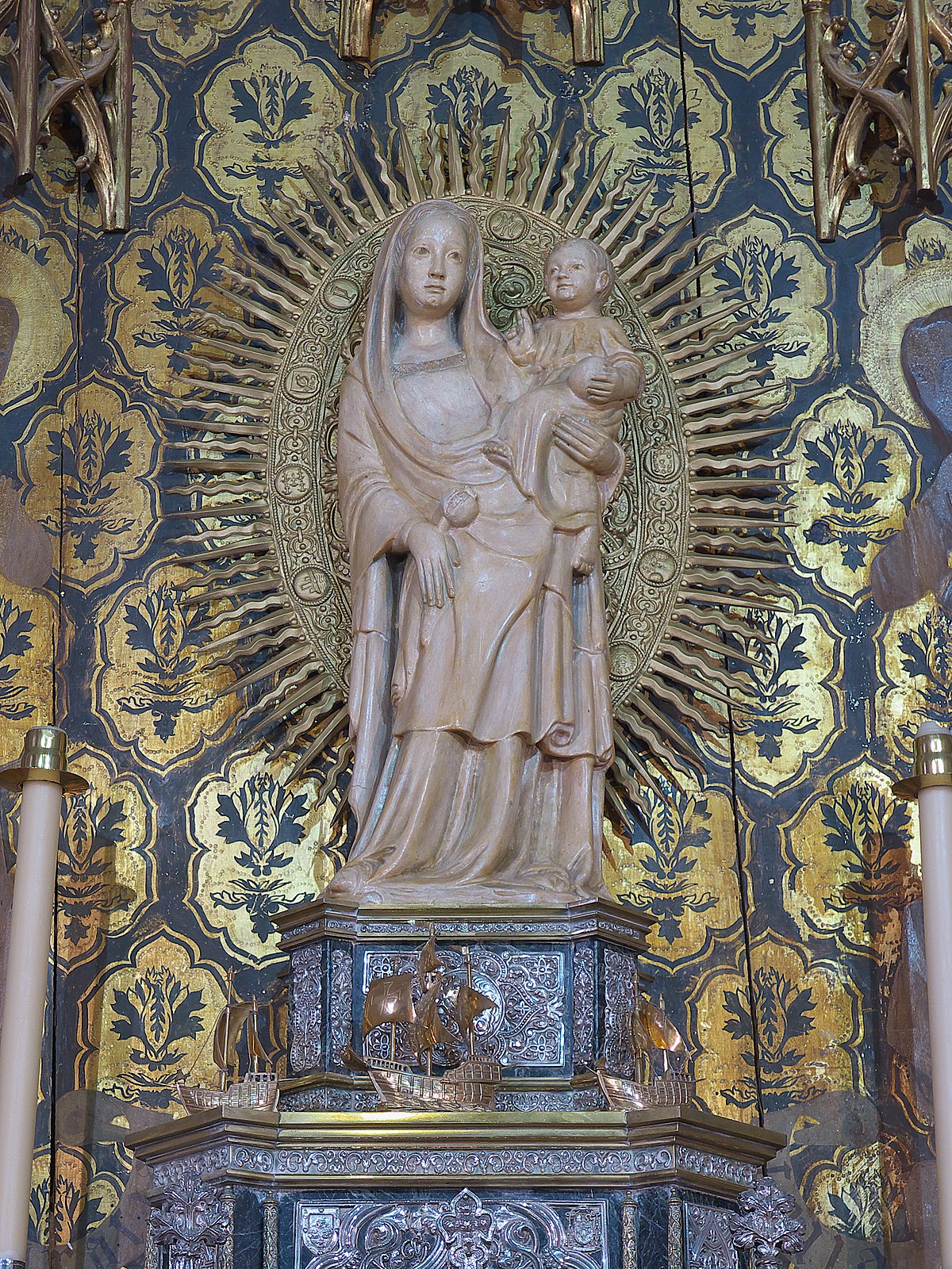 Se trata de una imagen realizada en alabastro. Fue testigo de excepción de los históricos acontecimientos del descubrimiento y evangelización de América. Es la imagen que presidio el zarpe de las 3 carabelas a lo desconocido, que culmino con el descubrimiento de América, Ante ella oraron Colón, los Pinzón, Hernán Cortés, Francisco Pizarro. Y un innumerable número de descubridores
