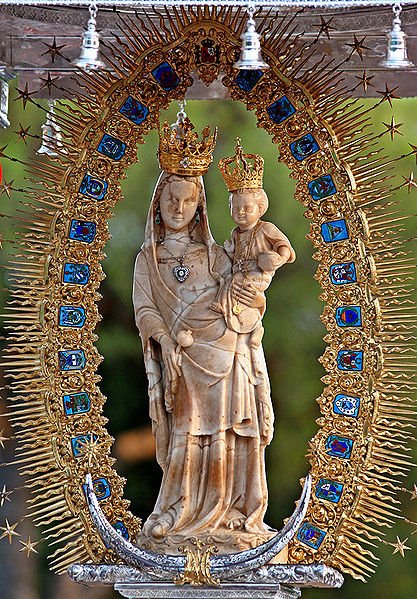El 14 de junio de 1993 fue coronada por el Papa Juan Pablo II, quien la nombró «Madre de España y América». La imagen fue esculpida en los comienzos del cristianismo por San Lucas y traída hasta el puerto de Palos en el año 333 por un marinero libio, Constantino Daniel. La escultura fue un regalo del obispo de Jerusalén San Macario como obsequio piadoso por haber dedicado la parroquia de Palos al mártir San Jorge.