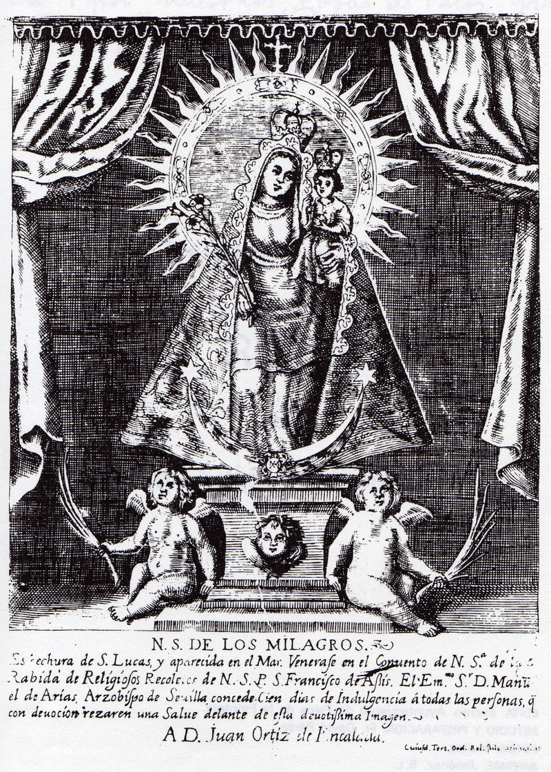 Un antiguo códice de 1714 de Fray Felipe de Santiago, devela su origen apostólico y luego su aparición en el mar después de finalizada la invasión musulmana entre las redes de unos pescadores de Huelva.