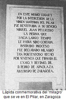 Tras su convalecencia, fue mendigo en la puerta del templo de Nuestra Señora del Pilar. Cada día, Pellicer untaba el muñón de su pierna con el aceite de las lámparas que ardían ante la Virgen del Pilar mientras pedía limosna a la puerta del templo.