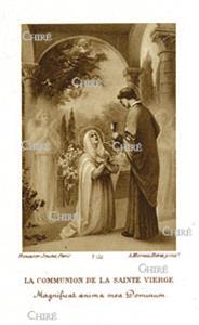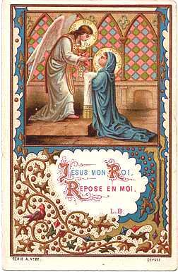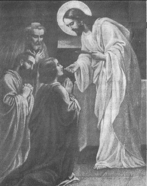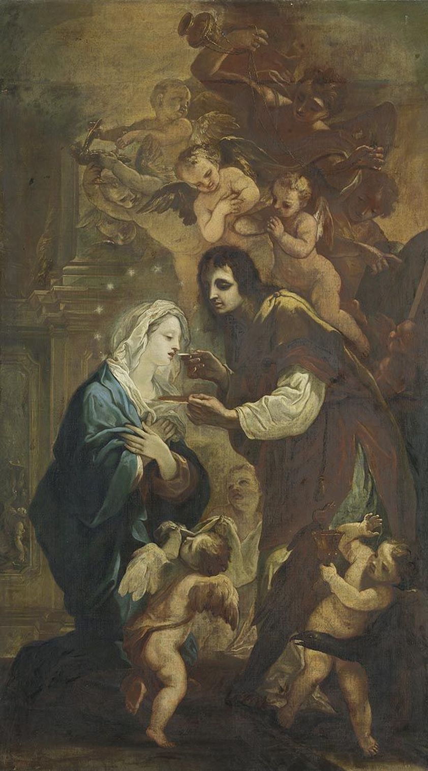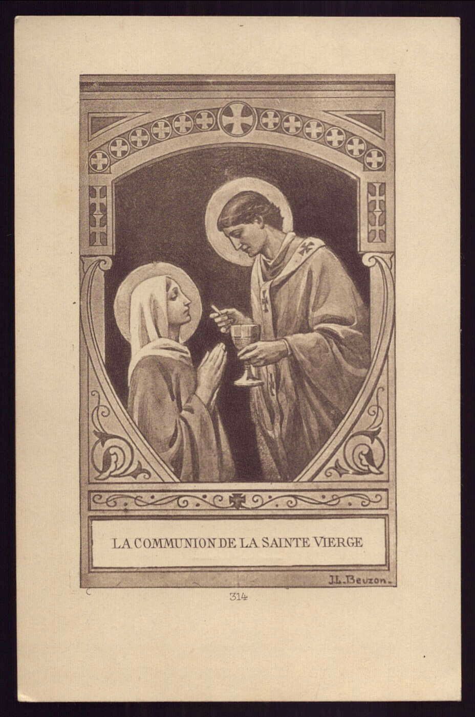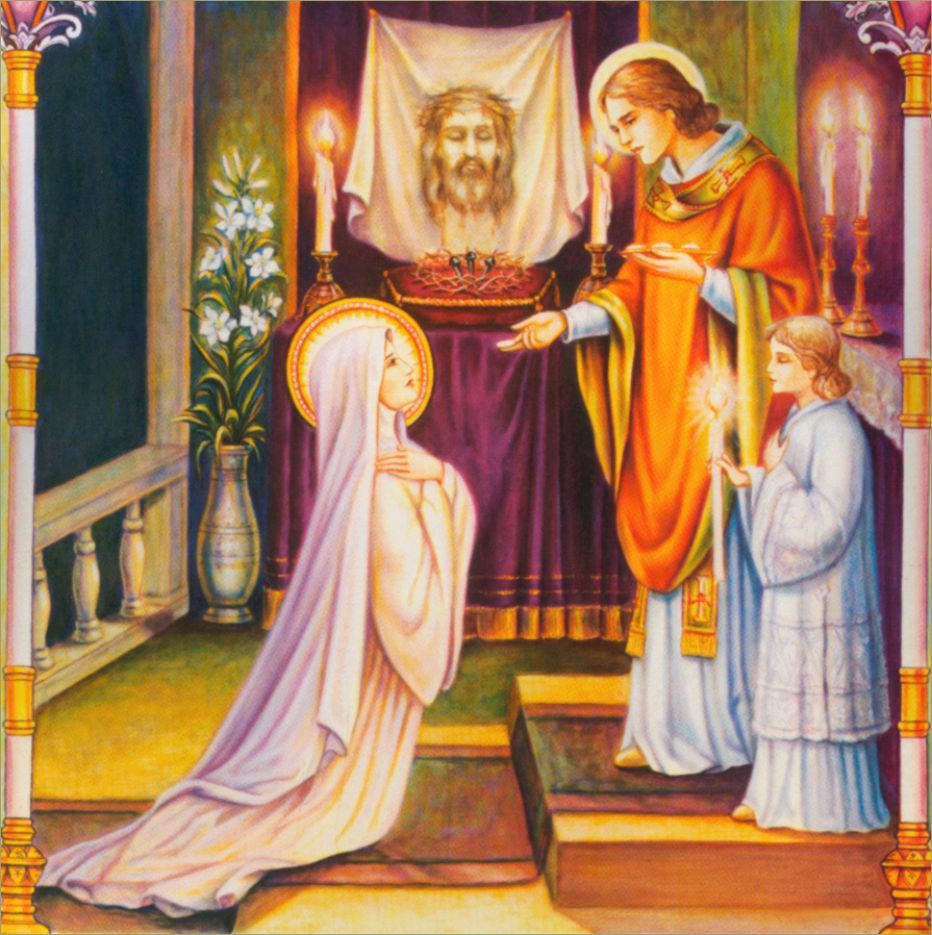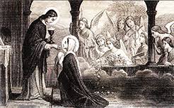 En las catacumbas de Priscilla, en Roma, hay una representación que data del siglo III. En él vemos la figura de un obispo que, imponiendo un velo sagrado a una virgen, le indica como modelo a María Santísima, que está pintada con el Niño Jesús en brazos.