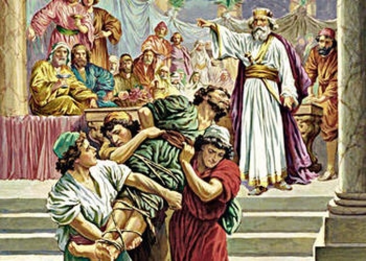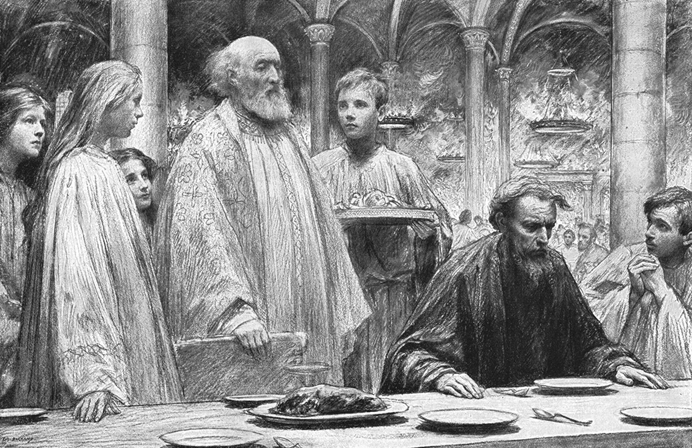 El reino de los cielos es semejante a un rey que preparó el banquete de bodas de su hijo. Envió a sus criados a llamar a los invitados a las bodas, pero éstos no quisieron venir. De nuevo envió a otros siervos, ordenándoles: Decid a los invitados: Mi comida está preparada; los becerros y cebones, muertos; todo está pronto; venid a las bodas.” Pero ellos, desdeñosos, se fueron, quién a su campo, quién a su negocio. Otros, cogiendo a los siervos, los ultrajaron y les dieron muerte. El rey, montando en cólera, envió sus ejércitos, hizo matar a aquellos asesinos y dio su ciudad a las llamas. Después dijo a sus siervos: El banquete está dispuesto, pero los invitados no eran dignos. Id, pues, a las salidas de los caminos, y a cuantos encontréis llamadlos a las bodas. Salieron a los caminos los siervos y reunieron a cuantos encontraron, buenos y malos, y la sala de bodas quedó llena de convidados. Entrando el rey para ver a los que estaban a la mesa, vio allí a un hombre que no llevaba traje de boda, y le dijo: Amigo, ¿cómo has entrado aquí sin el vestido de boda? El enmudeció. Entonces el rey dijo a sus ministros: Atadle de pies y manos y arrojadle a las tinieblas exteriores; allí habrá llanto y crujir de dientes.” Porque muchos son los llamados y pocos los elegidos. Mat 22:3-14