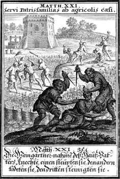Un padre de familia plantó una viña, la rodeó de una cerca, cavó en ella un lagar, edificó una torre y la arrendó a unos viñadores, partiéndo luego a tierras extrañas. Cuando se acercaba el tiempo de los frutos, envió a sus criados a los viñadores, para percibir su parte. Pero los viñadores, cogiendo a los siervos, a uno le atormentaron, a otro lo mataron, a otro le apedrearon. De nuevo les envió otros siervos en mayor número que los primeros, e hicieron con ellos lo mismo. Finalmente, les envió a su hijo, diciendo: Respetarán a mi hijo. Pero los viñadores, cuando vieron al hijo, se dijeron: Es el heredero; ea, a matarle, y tendremos su herencia,” Y, tomándole, le sacaron fuera de la viña y le mataron. Cuando venga, pues, el amo de la viña, ¿qué hará con estos viñadores? Le respondieron: Hará perecer de mala muerte a los malvados y arrendará la viña a otros viñadores que le entreguen los frutos a su tiempo. Jesús les respondió: ¿No habéis leído alguna vez en las Escrituras: “La piedra que los edificadores habían rechazado, ésa fue hecha cabeza de esquina; del Señor viene esto, y es admirable a nuestros ojos”?” Por eso os digo que os será quitado el reino de Dios y será entregado a un pueblo que rinda sus frutos. Y el que cayere sobre esta piedra se quebrantará, y aquel sobre quien cayere será pulverizado. Oyendo los príncipes de los sacerdotes y los fariseos sus parábolas entendieron que de ellos hablaba, Mat 21:33-45