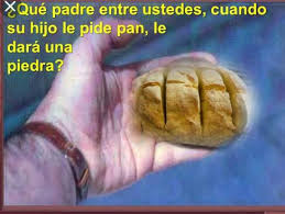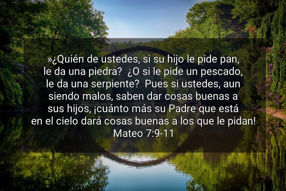 ¿Quién de vosotros es el que, si su hijo le pide pan, le da una piedra, o, si le pide un pez, le da una serpiente? Si, pues, vosotros, siendo malos, sabéis dar cosas buenas a vuestros hijos, ¡cuánto más vuestro Padre, que está en los cielos, dará cosas buenas a quien se las pide! Mat 7:9-11