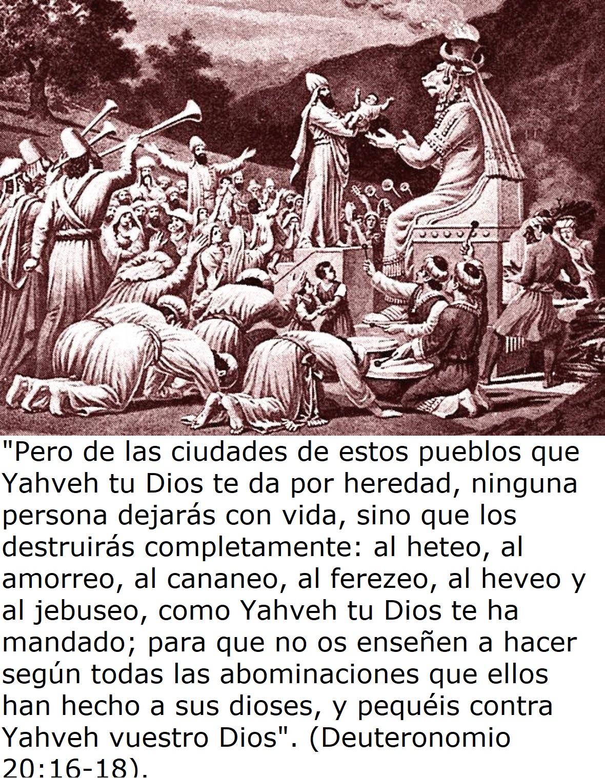 Gén 15:16 Dios promete a Abraham la tierra prometida “Volverán aquí a la cuarta generación, porque hasta entonces no se habrá colmado la culpa de los amorreos”. Es decir que ya Dios prevé, la destrucción de los pueblos por su pecado, que no es otro que tener falsos Dioses practicar el espiritismo y sacrificar a sus hijos. Algo como el aborto hoy, y es Israel, el pueblo mediante el cual Su Justicia, caerá sobre los Amorreos, No es, pues, por tu justicia ni por la rectitud de tu corazón por lo que vas a poseer su tierra, sino que es por la perversidad de esas gentes por lo que el Señor, tu Dios, las expulsa ante ti, y para mantener la palabra que juró el Señor a tus padres, a Abrahán, a Isaac y a Jacob. Deu 9:5