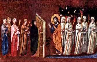 Las vírgenes prudentes responden así no por avaricia, sino por temor, pues cada uno recibirá el premio por sus obras. Ni en el día del juicio podrán compensarse los vicios de los unos con las virtudes de los otros. Las bodas son la adquisición de la inmortalidad.