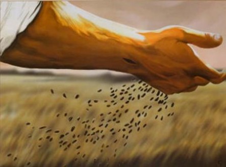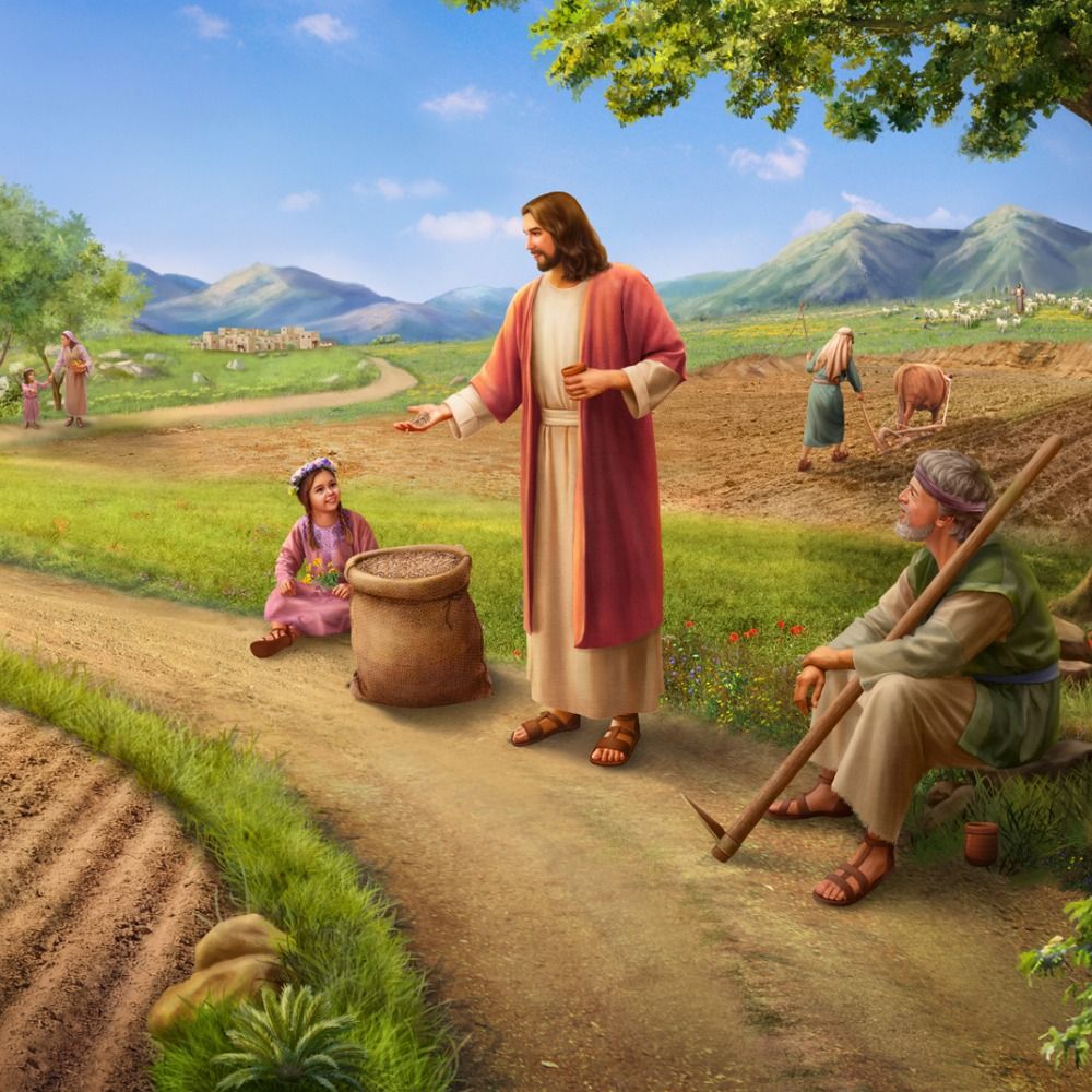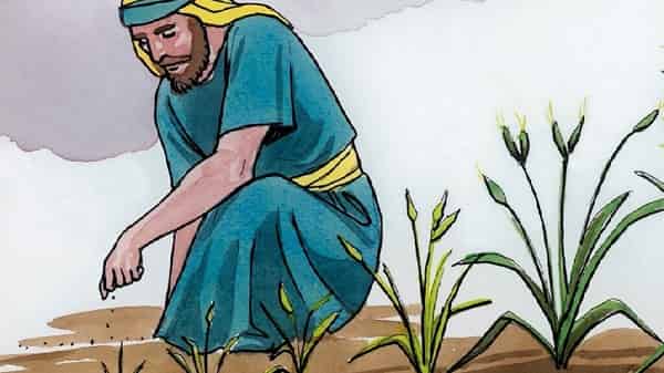 El reino de Dios es como un hombre que arroja la semilla en la tierra, y ya duerma, ya vele, de noche y de día, la semilla germina y crece, sin que él sepa cómo. De sí misma da fruto la tierra, primero la hierba, luego la espiga, en seguida el trigo que llena la espiga;” y cuando el fruto está maduro, se mete la hoz, porque está en sazón. Mar 4:26-29