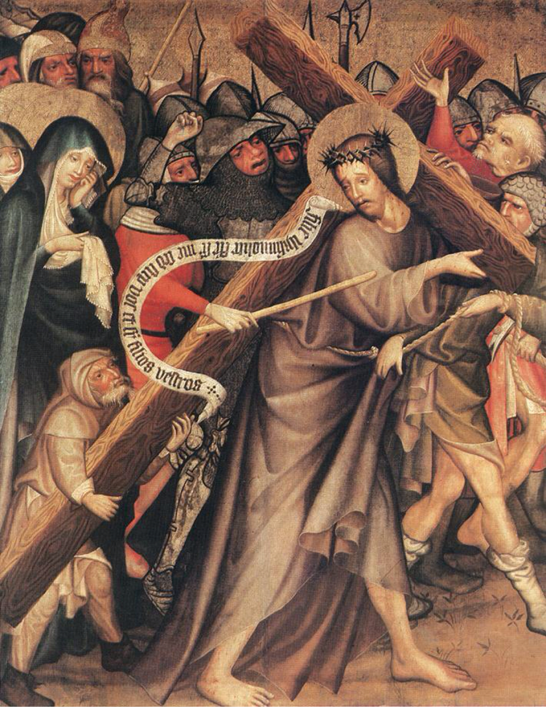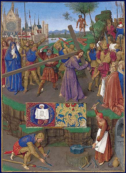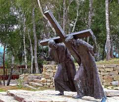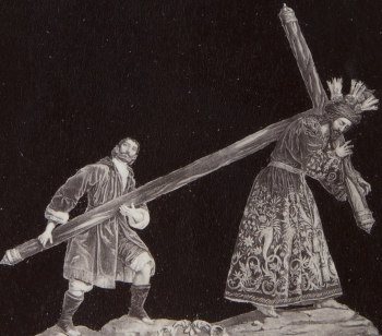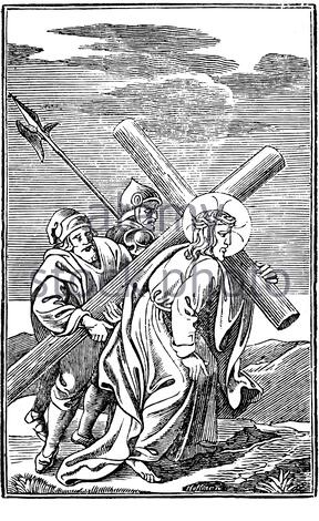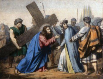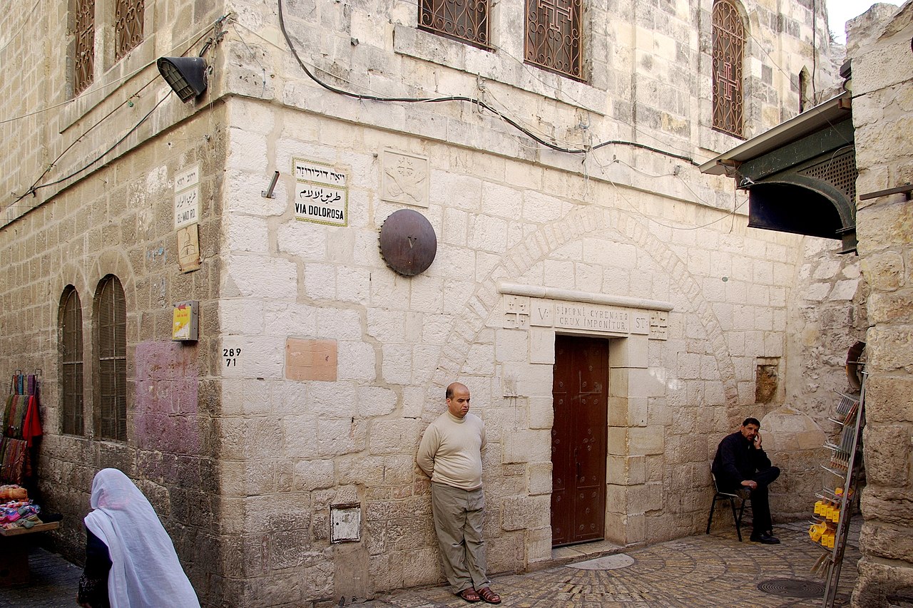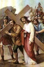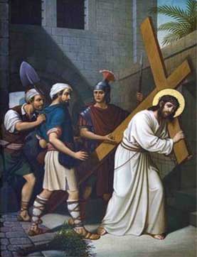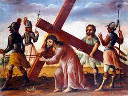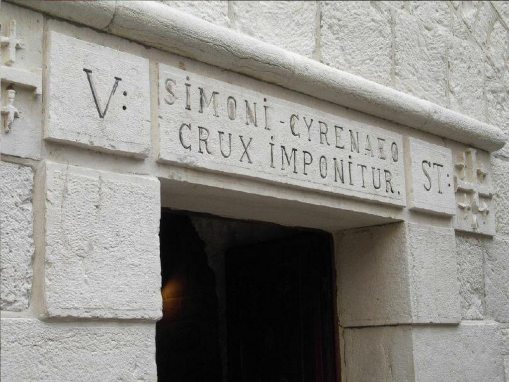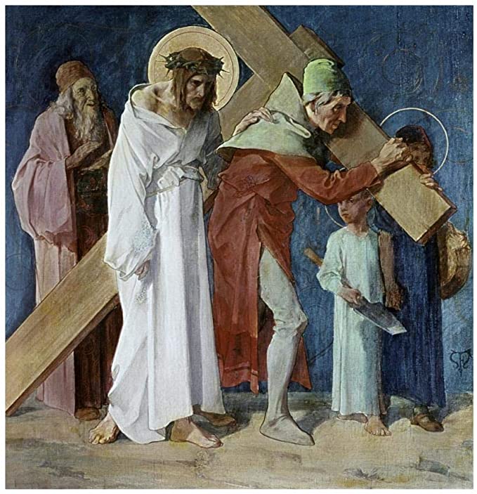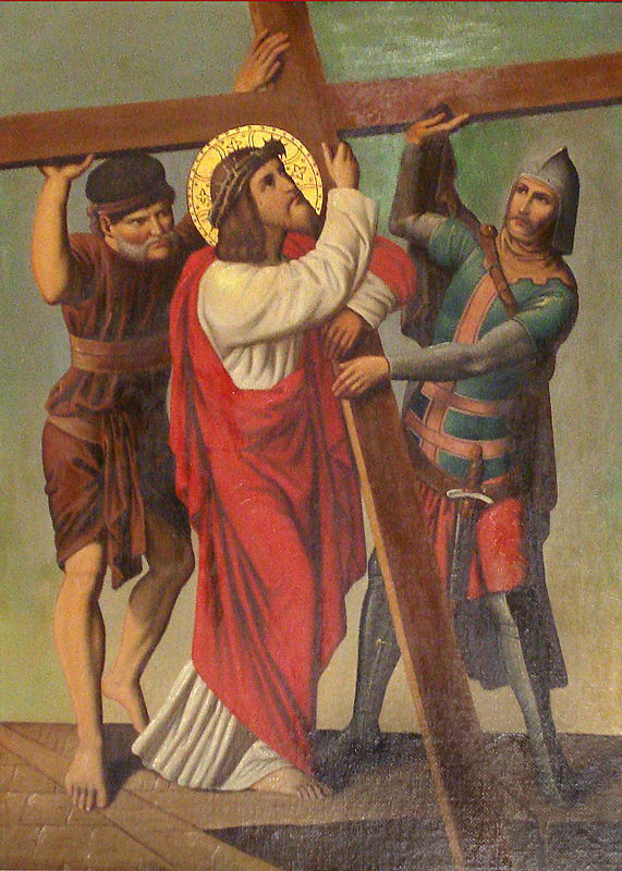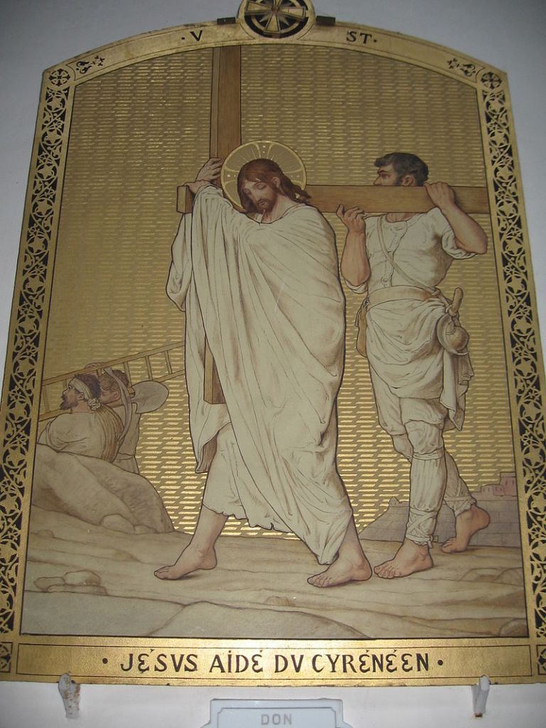 El acto de Simón de llevar la cruz, o patibulum (viga transversal en latín), para aliviar a Jesús es el quinto de las Estaciones de la Cruz o viacrucis.