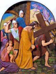 Simon era un pagano. Los romanos reconocieron que no era judío por su ropa y lo eligieron para obligarlo a ayudar a Jesús a llevar la cruz, venia del campo porque era jardinero, primero rehusó, pero tuvo que ceder a la fuerza. Era un hombre robusto de 40 años, viendo que Jesús lloraba, y le miraba con ternura. Simón le ayudo a levantarse, y al instante los alguaciles ataron sobre sus hombros uno de los brazos de la cruz. Él seguía a Jesús, que se sentía aliviado de su carga. Cuando se pusieron otra vez en marcha. Simón se sintió penetrado de compasión.