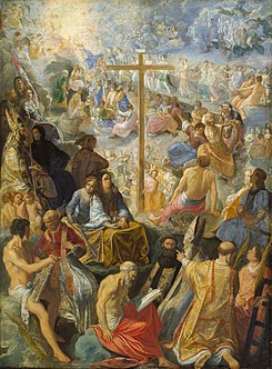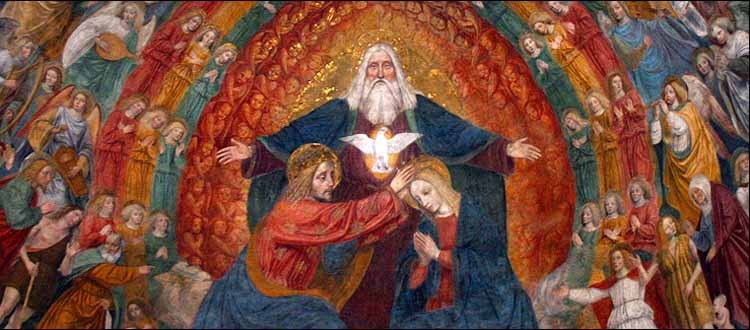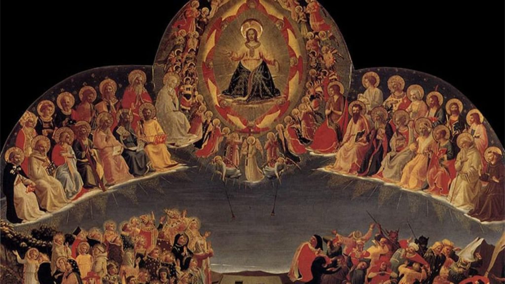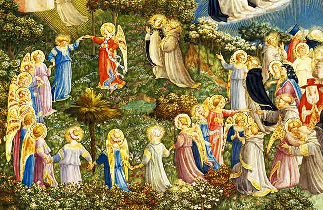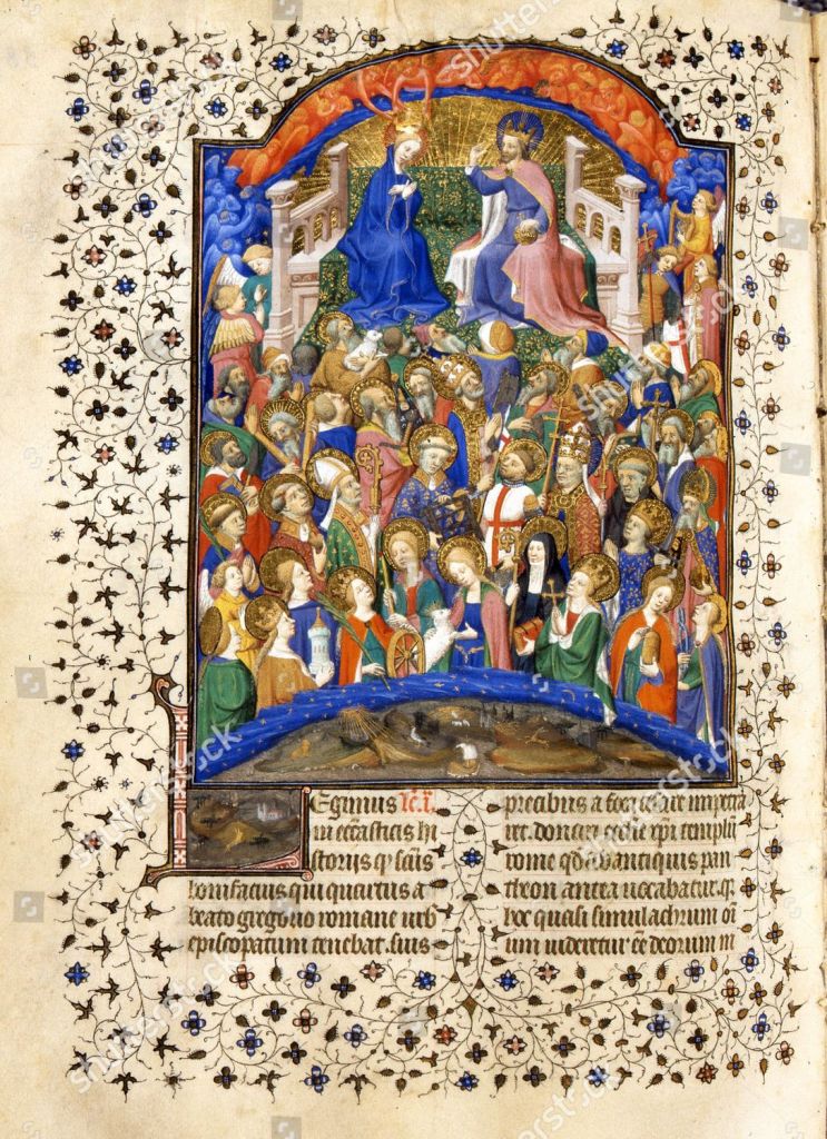 Mandatory Credit: Photo by Kharbine-Tapabor/Shutterstock (6051054gh) The Celestial Court, manuscript illumination, c. 1414, from Bréviaire à l’usage de Paris, Ms 2 f. 387 (Studio of boucicaut master) Art (Manuscripts) – various Artist: Studio of BOUCICAUT MASTER (15th century, French) Location: Bibliothèque Municipale Châteauroux