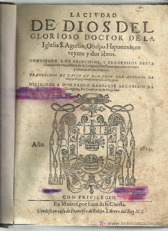 La ciudad espiritual cuya ley es el amor de Dios hasta el desprecio de uno mismo; y la ciudad carnal, que preconiza el amor de uno mismo hasta el desprecio de Dios, una gobernada por Dios, la otra por Satanás.